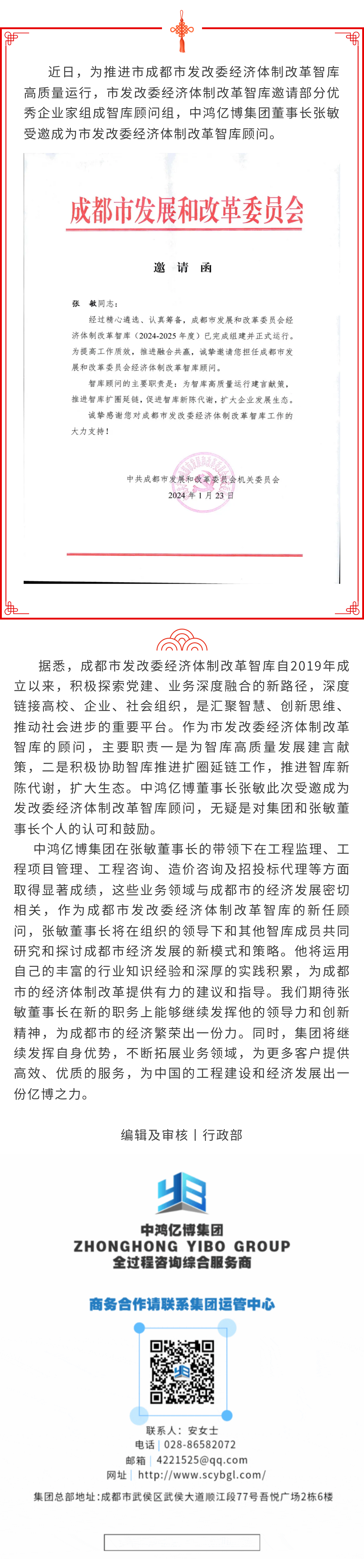 亿博动态丨集团董事长张敏受邀担任市发改委经济体制改革智库顾问