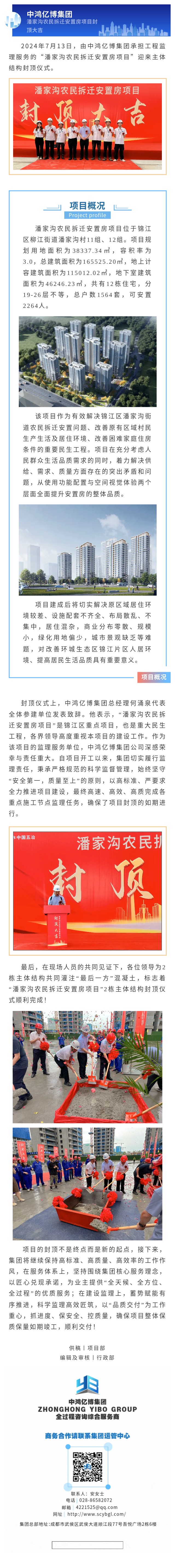 亿博动态 | 祝贺集团承监的“潘家沟农民拆迁安置房项目”主体结构顺利封顶!