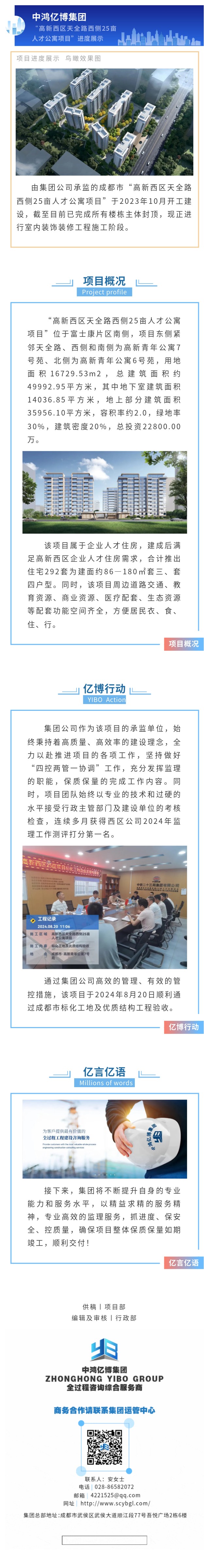 亿博动态丨集团承监的“高新西区天全路西侧25亩人才公寓项目”进度展示