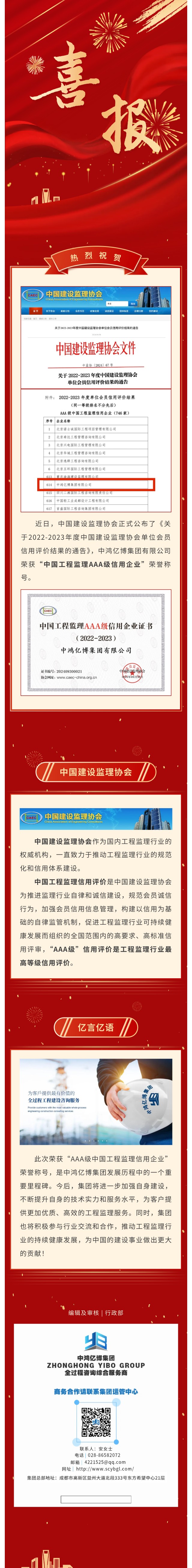 亿博动态 | 喜报!祝贺集团荣获中国建设监理协会“中国工程监理AAA 级信用企业”荣誉称号