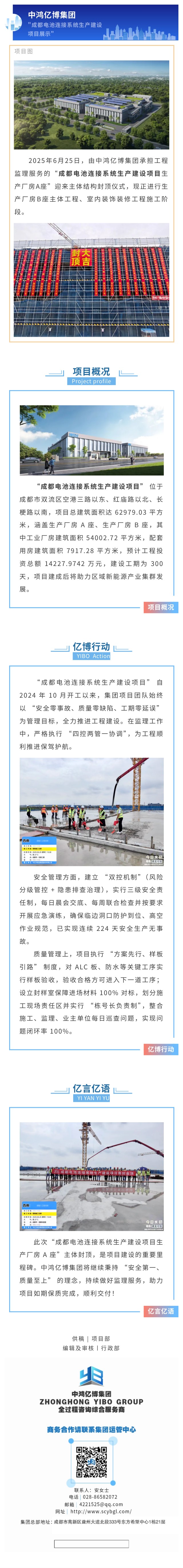 祝贺集团承监的“成都电池连接系统生产建设项目生产厂房A座”主体结构顺利封顶!