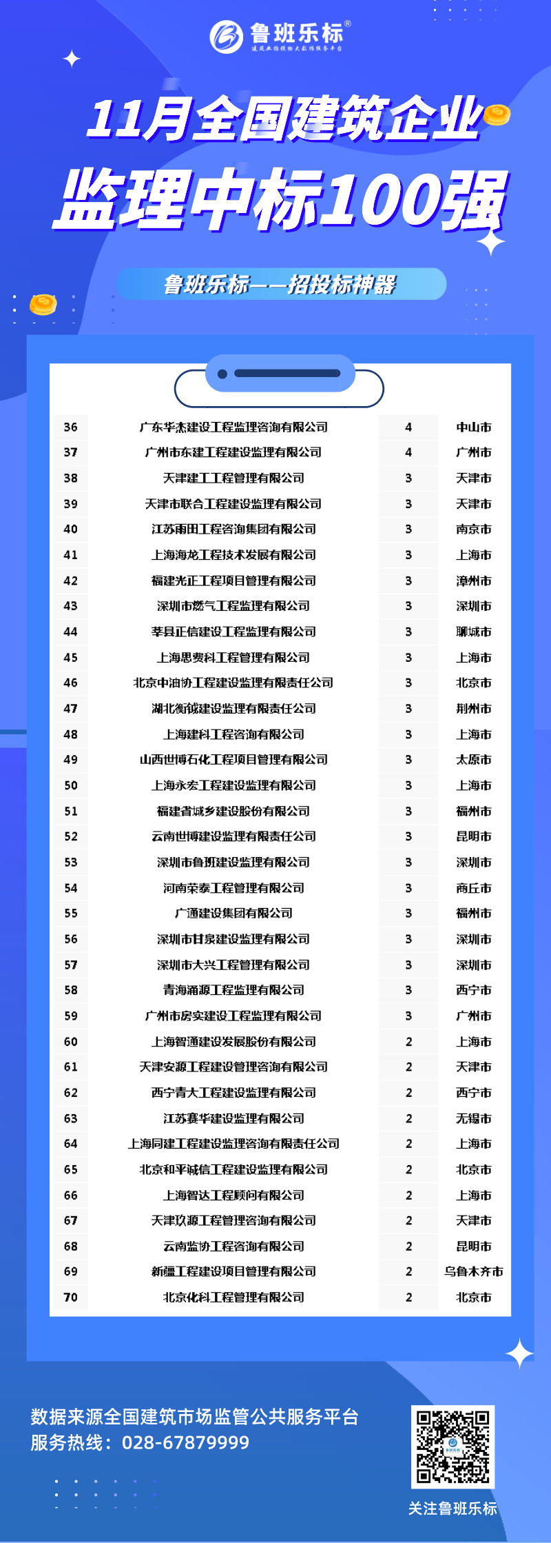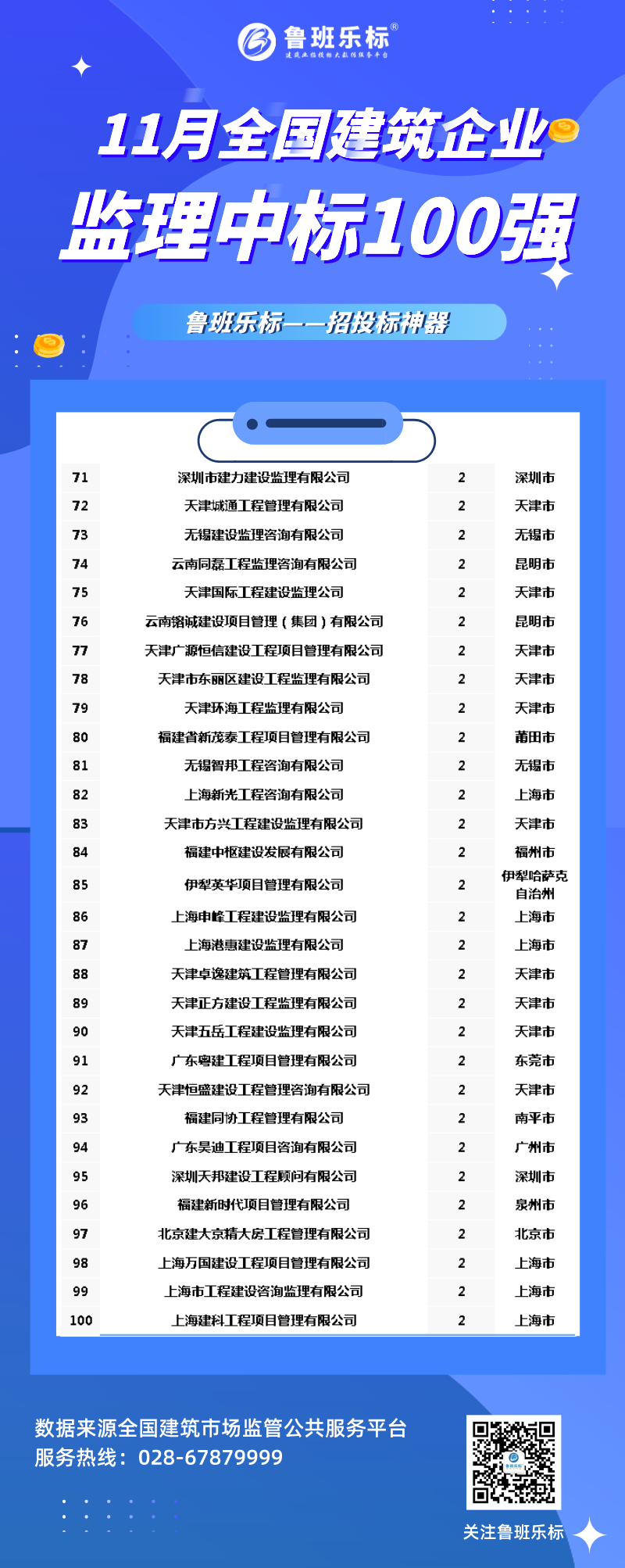 湖北建盛工程项目管理有限公司以中标14个居榜首;