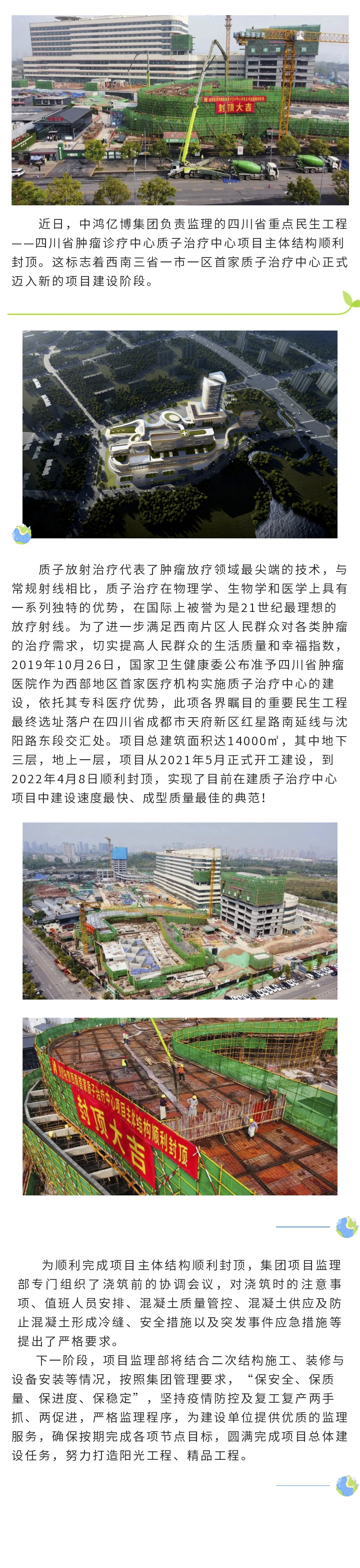 【集团项目动态】四川省肿瘤诊疗中心质子治疗中心项目主体结构顺利封顶