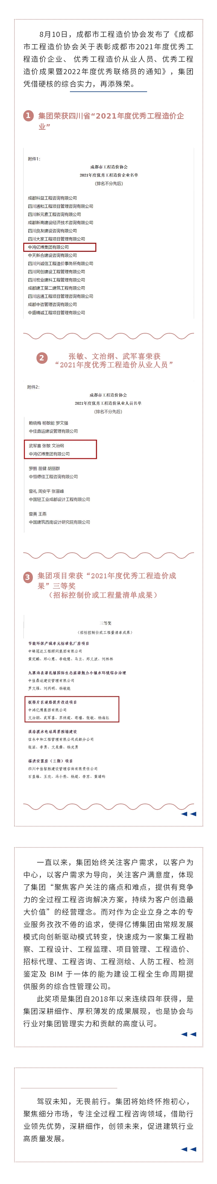 集团连续四年荣获成都市工程造价行业多项大奖