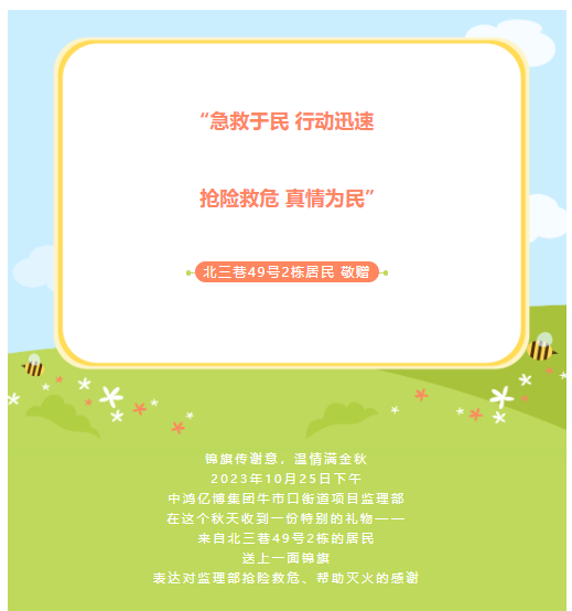 锦旗传谢意 温情满金秋——项目监理部获赠居民锦旗