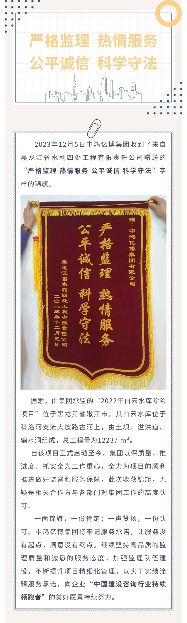 亿博动态丨“严格监理 热情服务”恭喜集团收获锦旗