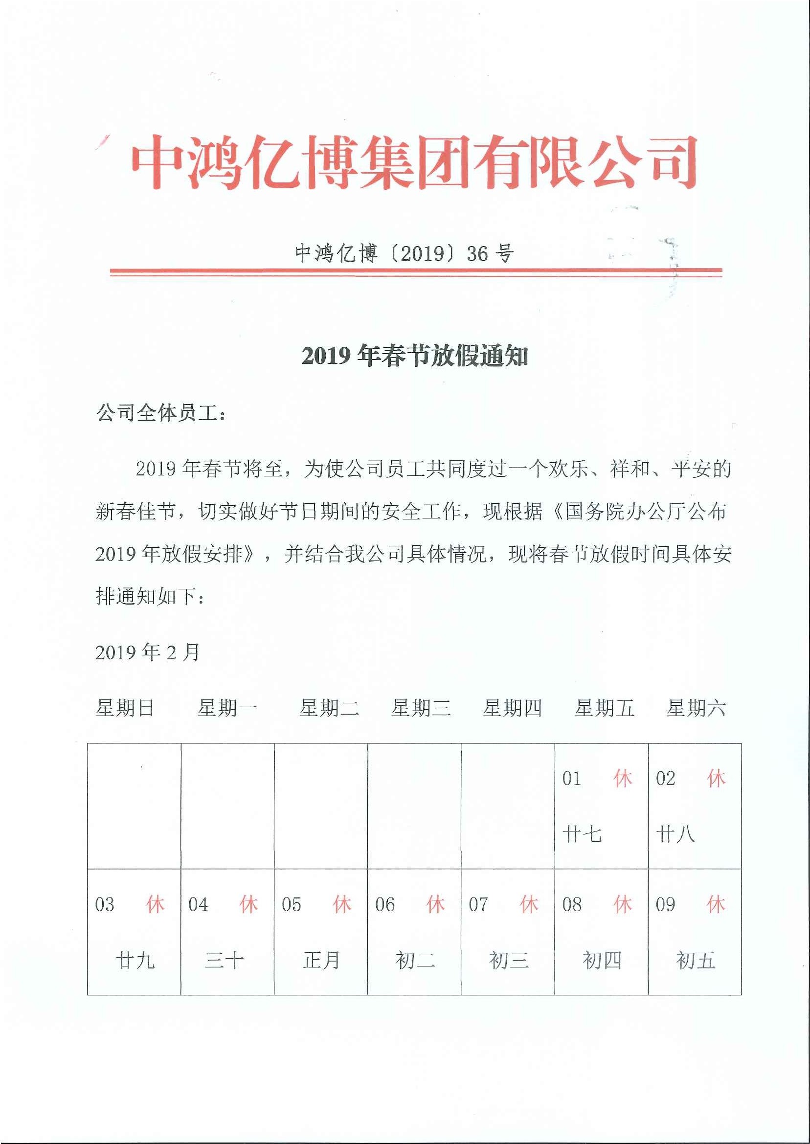中鸿亿博集团春节放假通知