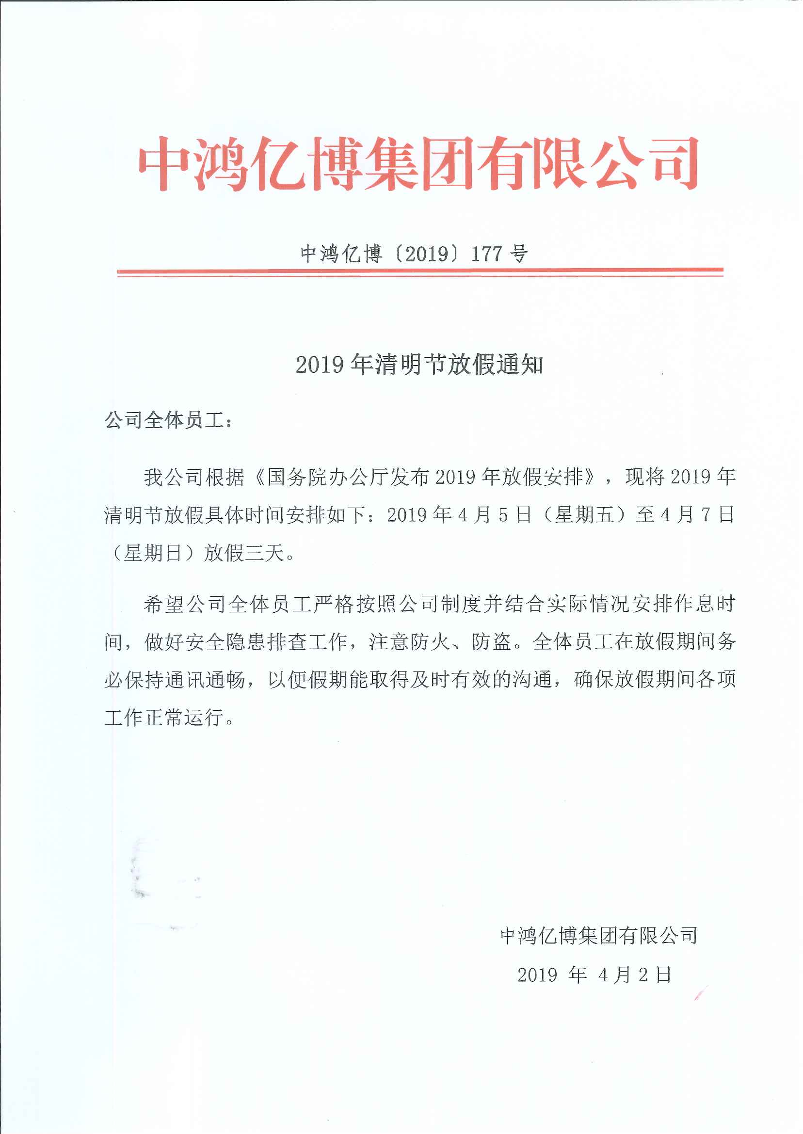 2019清明节放假通知