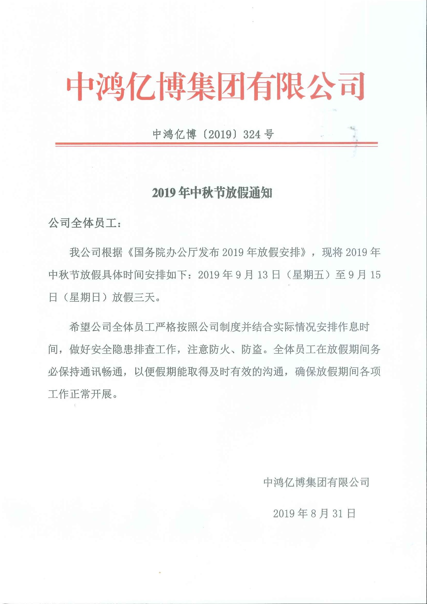 中鸿亿博集团关于集团总部办公时间继续延期的通知