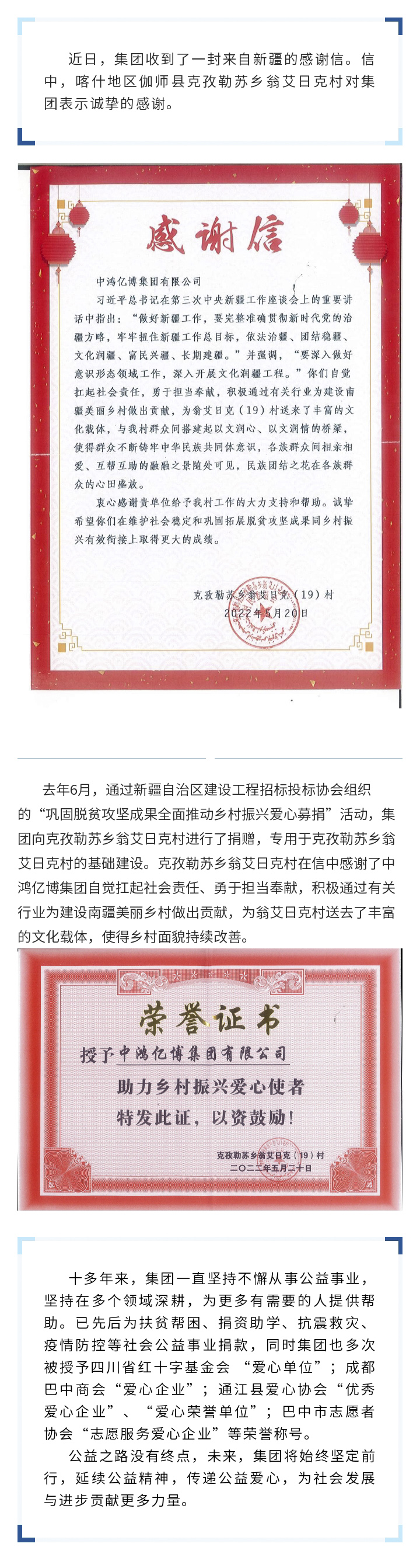 助力乡村振兴——中鸿亿博集团向翁艾日克村捐赠爱心